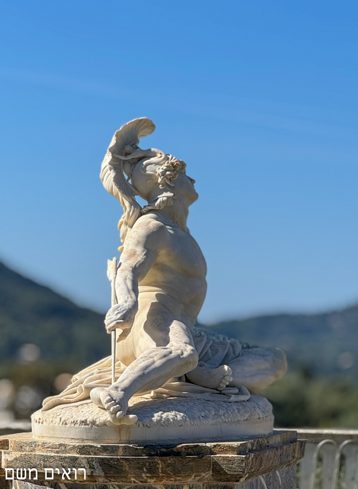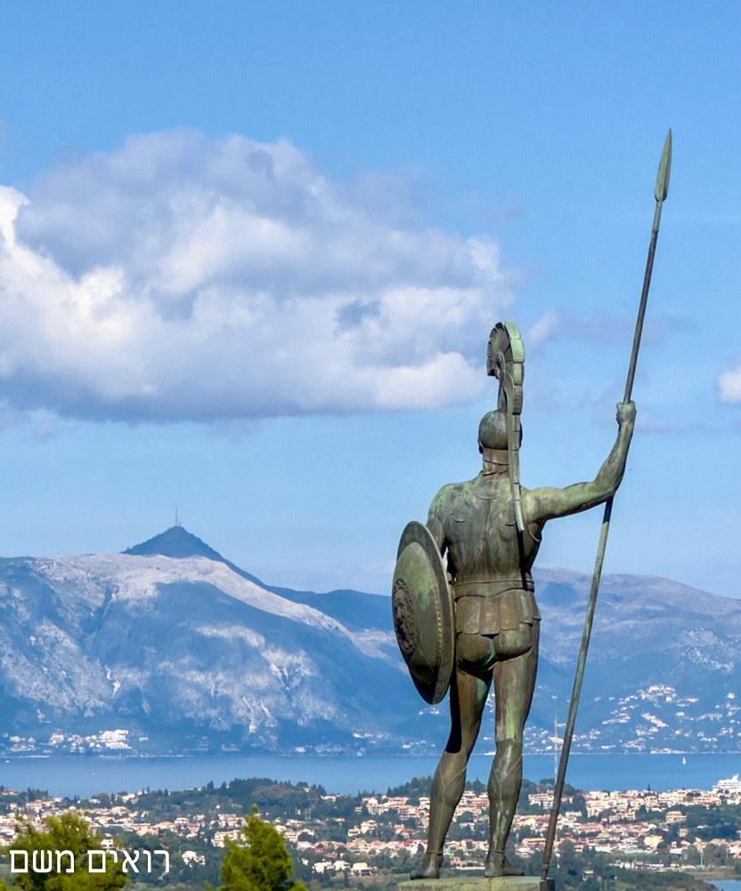 עוד סיור קצר בסמטאות, קפה, גלידה אחרונה ובסיום לרכב, איתו נסענו לארמון אכליון Achilleion Palace. הארמון נבנה בסוף המאה ה-19, תוכנן כמקום מפלט קיץ עבור הקיסרית אליזבת מאוסטריה, הידועה גם בשם סיסי והוא נקרא על שמו של הגיבור היווני אכילס, שפסל גדול שלו נמצא במרכז הגן.
