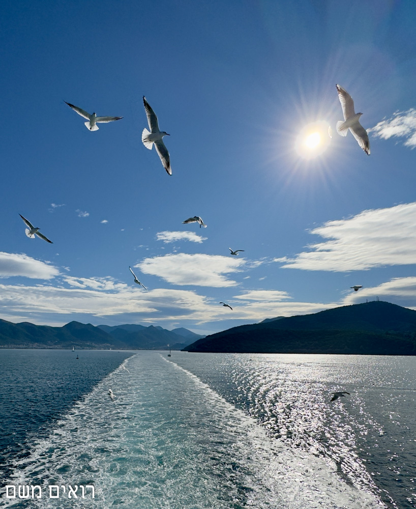 מזג האוויר, הנוף והאווירה היו מושלמים: שמיים כחולים, ההרים של יוון ואלבניה באופק, קבוצה עליזה רקדה על הסיפון לצלילי מוזיקה יוונית קלאסית, ולהקה של שחפים הצטרפו לחגיגה וחגו מעלינו לאורך חלק גדול מהדרך ואנחנו פשוט ישבנו ונהנינו מכל הטוב הזה.