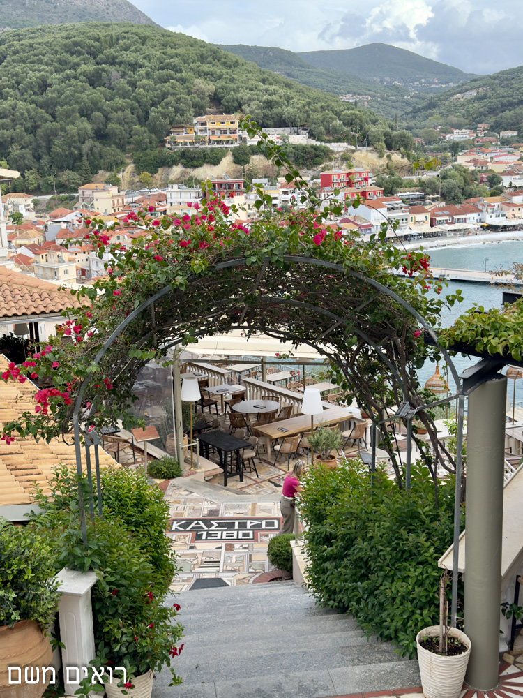 אחרי שהתמקמנו יצאנו לכיוון העיר, חמש דקות הליכה על הטיילת שלאורך החוף בטיפוס לעבר המצודה הוונציאנית Venetian Castle of Parga, שניצבת על הגבעה המשקיפה על כל העיר והמפרץ. הנוף מלמעלה פשוט משגע, הרים ירוקים עוטפים את העיר ונשפכים עד הים, בתי האבן הצבועים בגוונים של אדום, צהוב וכחול מטפסים במעלה ההר סביב מפרץ עם מים בצבע טורקיז ובמרכזו נמל קטן וטיילת תוססת עם שפע טברנות, חנויות ובתי קפה.